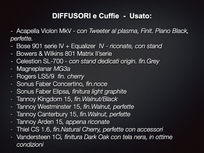 Accuphase, Esoteric, McIntosh, Elac, Moon, Tannoy, Sonus Faber, Jeff Rowland, JBL, Vivid