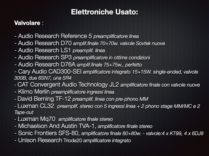Accuphase, Esoteric, McIntosh, Elac, Moon, Tannoy, Sonus Faber, Jeff Rowland, JBL, Vivid