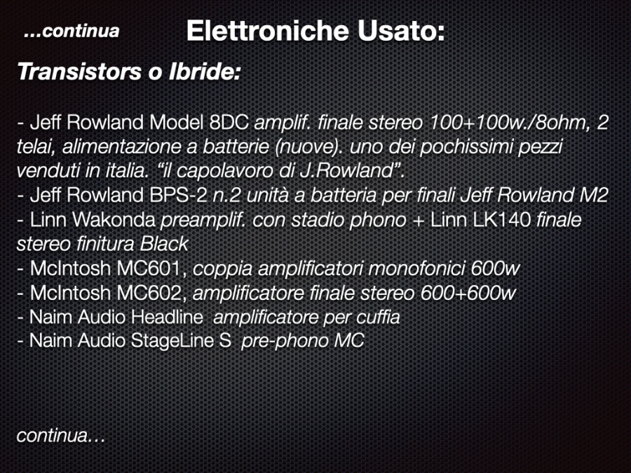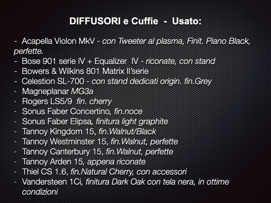 Accuphase, Esoteric, McIntosh, Elac, Moon, Tannoy, Sonus Faber, Jeff Rowland, JBL, Vivid