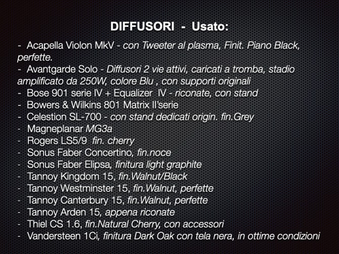 Accuphase, Esoteric, McIntosh, Elac, Moon, Tannoy, Sonus Faber, Jeff Rowland, JBL, Vivid